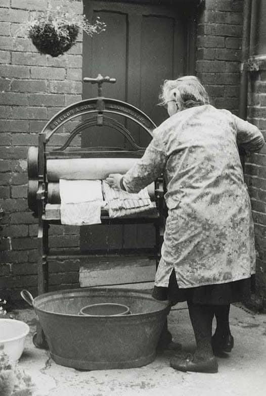 I still have a toy version of a mangle and remember getting my fingers caught between rollers (despite being told many time to ‘mind your fingers’) and that was just playing with small towels so I dread to think what it was like with full size bedding and blankets.